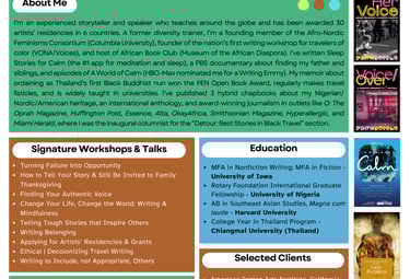 Ever dream of writing your book on the beach in Brazil? From a hilltop castle in Italy? In a boat-turned-writing-studio in the Canadian Rockies? With friends in a cottage nestled in a California vineyard? Drawing upon her experience attending 20 writing residencies around the globe and serving as a juror for 5, Faith leads a masterclass for writers interested in applying for that proverbial room of one’s own.